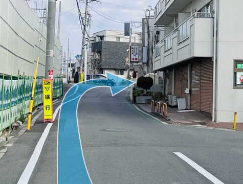 3.道に沿って突き当りまで進み、突き当りを右へ