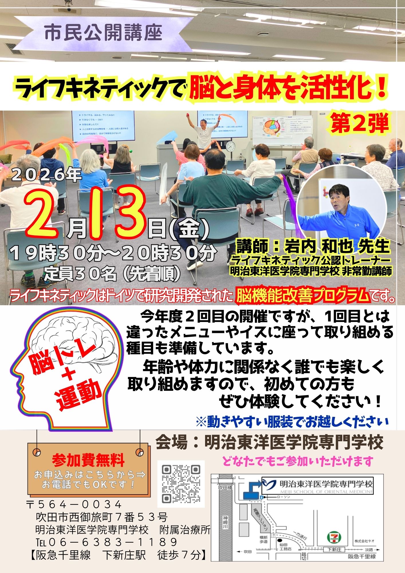 【市民公開講座】2026年2月13日(金)ライフキネティックで脳と身体を活性化!第2弾