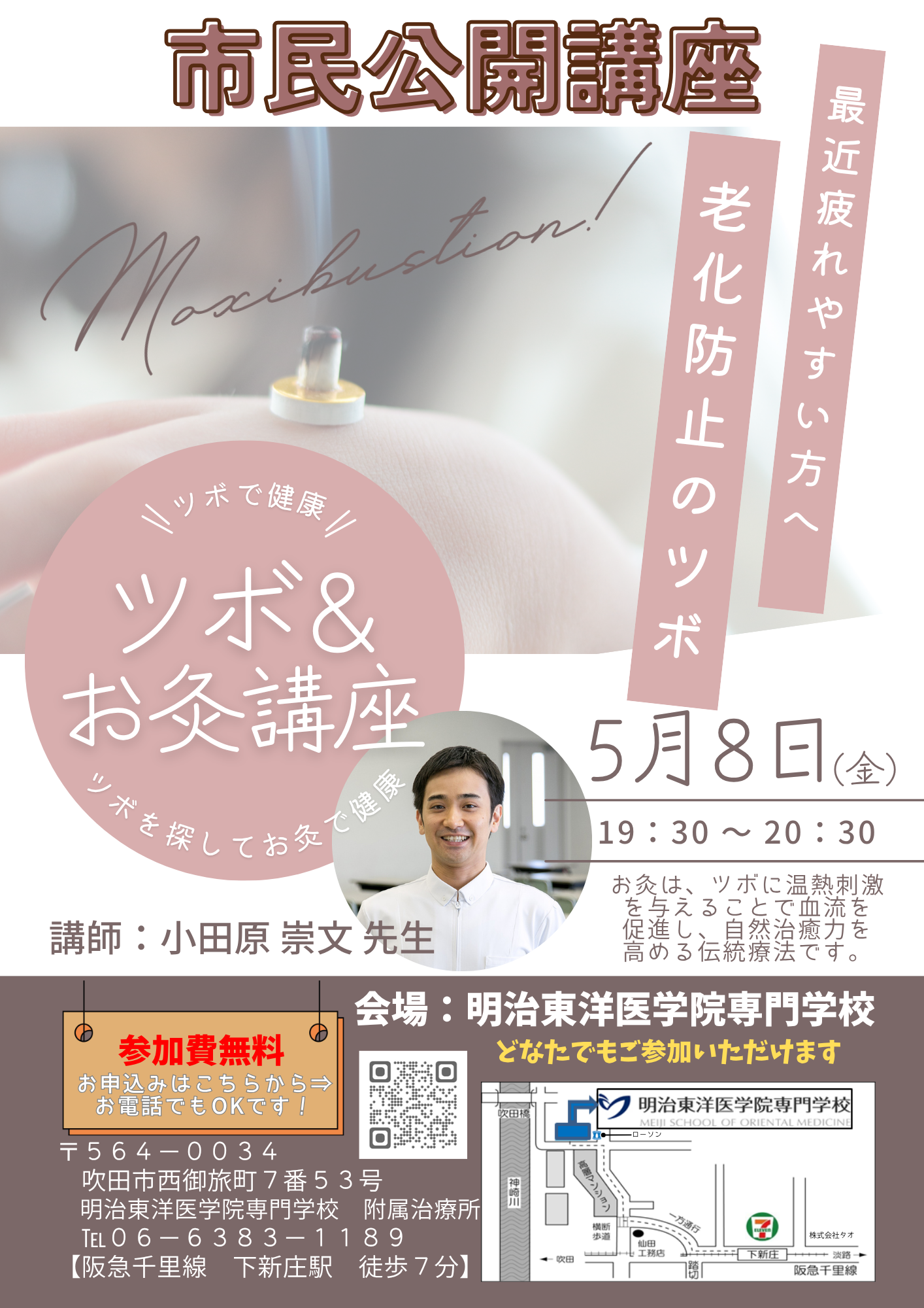 【市民公開講座】2026年5月8日(金)ツボ&お灸講座 ~ツボで健康・ツボを探してお灸で健康~