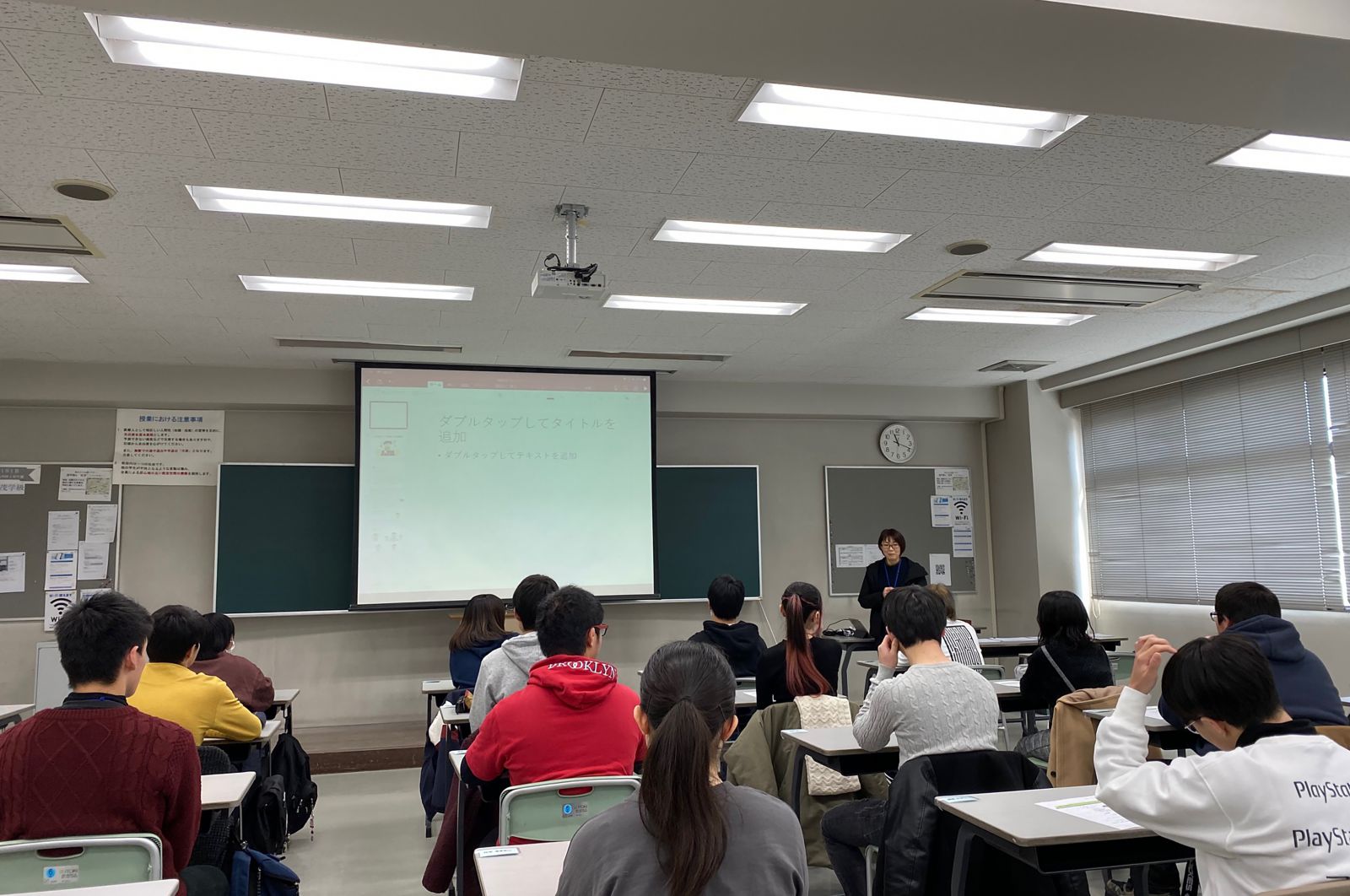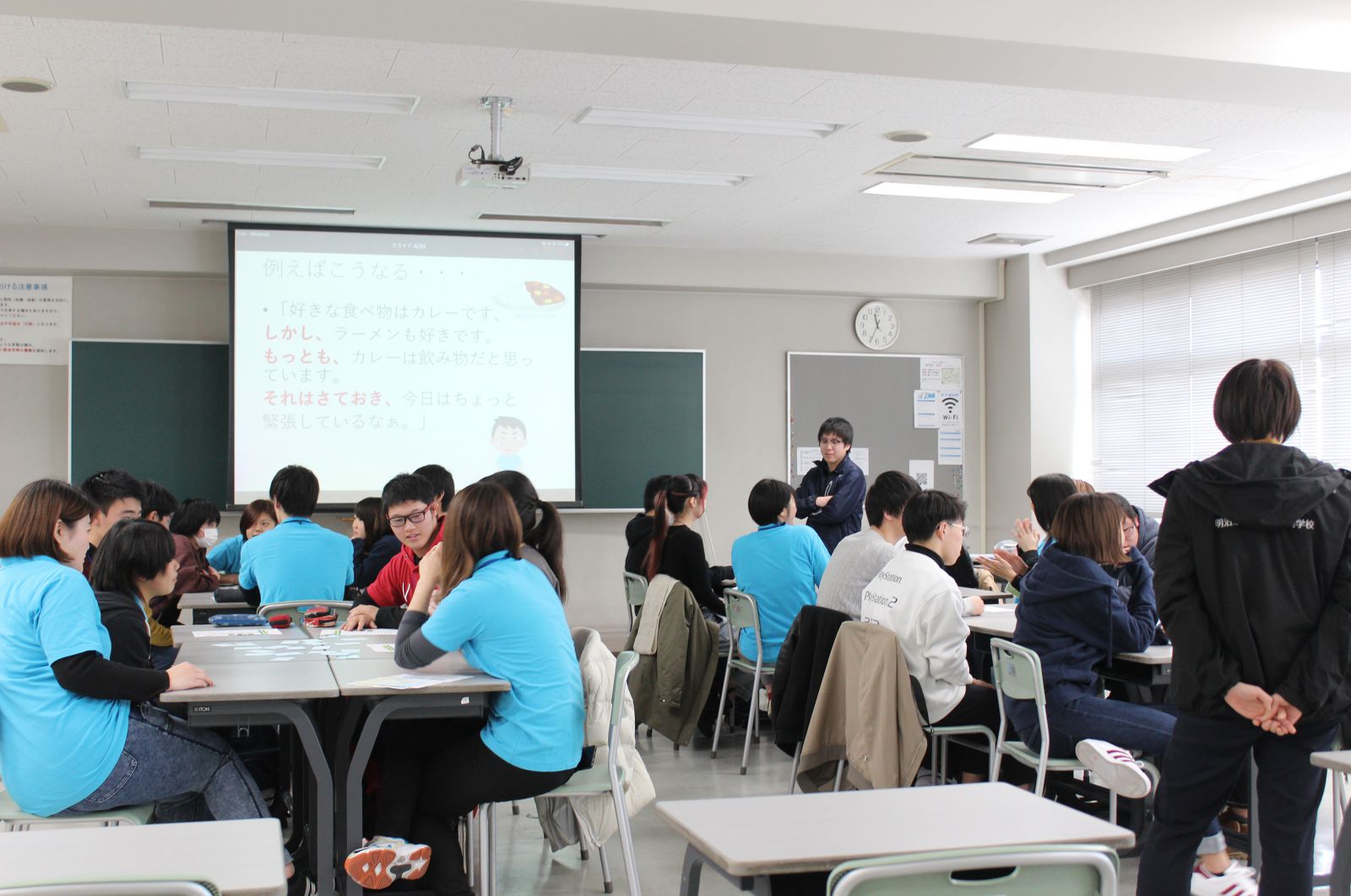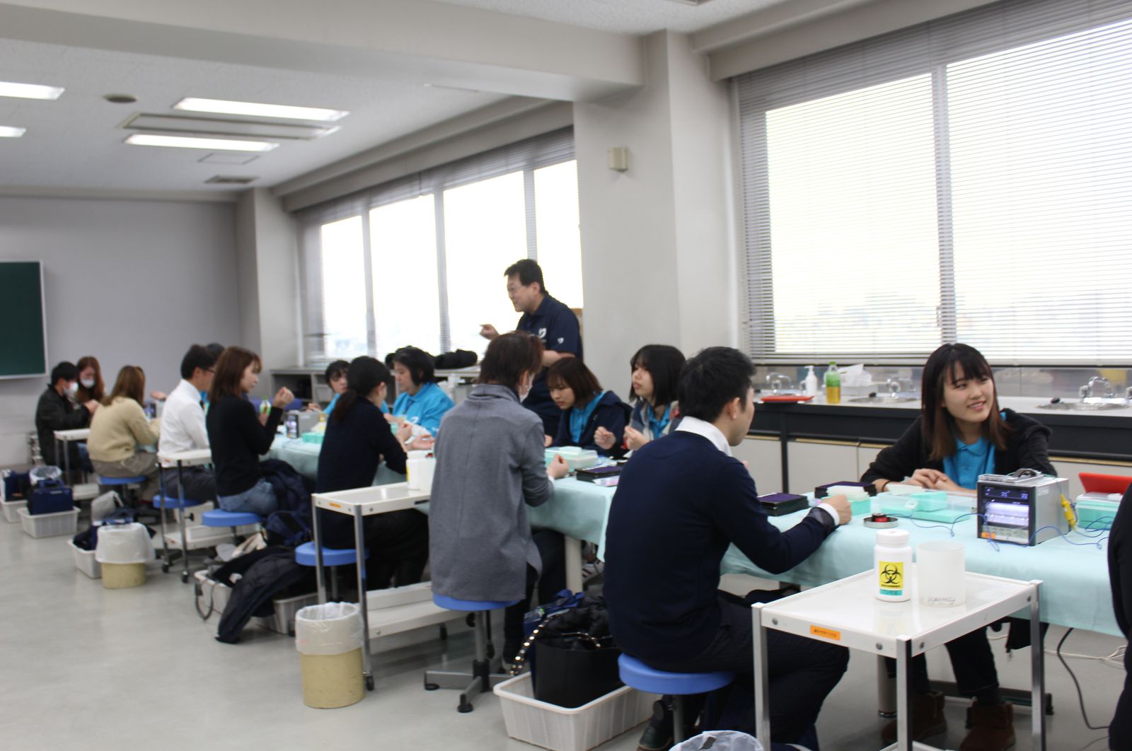 また、同日の午前中からは今年も来年度から入学予定の高校3年生を対象に、4月からの入学に向けて、プレスクールをスタートしました。第1回目は緊張もあり、みんな表情が硬かったですが、午前の部の『アイスブレイキング』でグループになり、自己紹介やグループワークをしたことで、だいぶ緊張がほぐれ、昼食の時間では先生や先輩方、同級生のみんなと楽しくお話ししたり、笑顔がこぼれる姿がみえました!午後からの体験授業では、からだのしくみについて実際に筋肉の動きを考えてもらいました。第2回は2月16日(日)です♪
