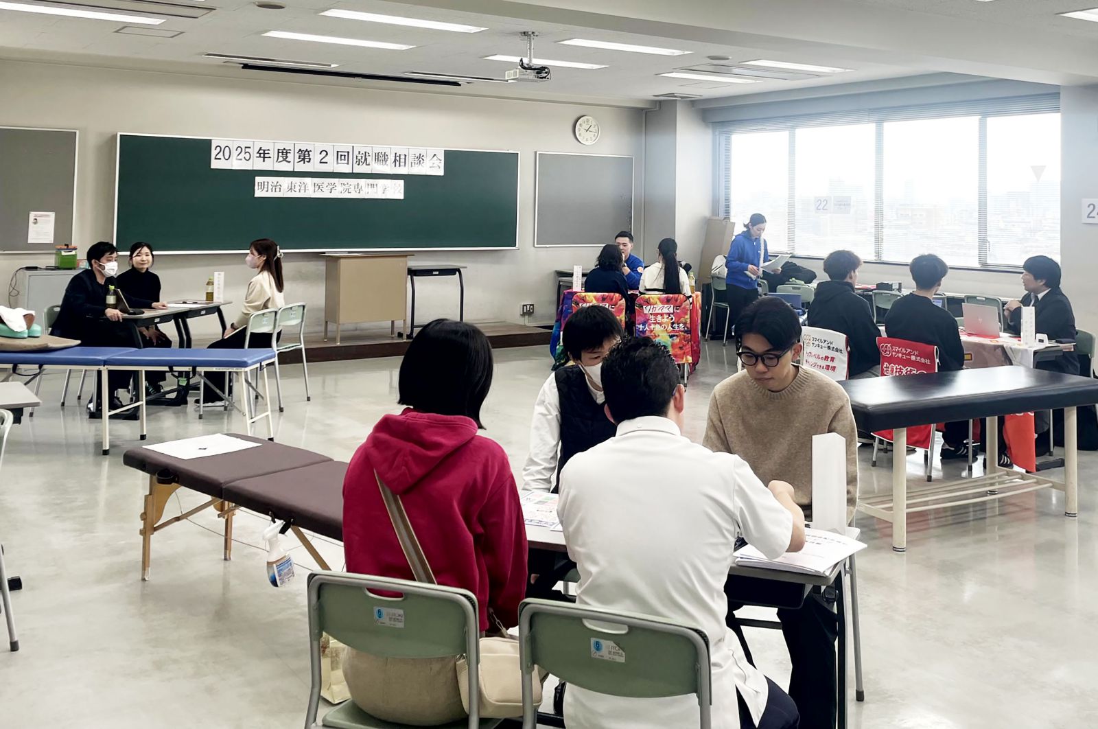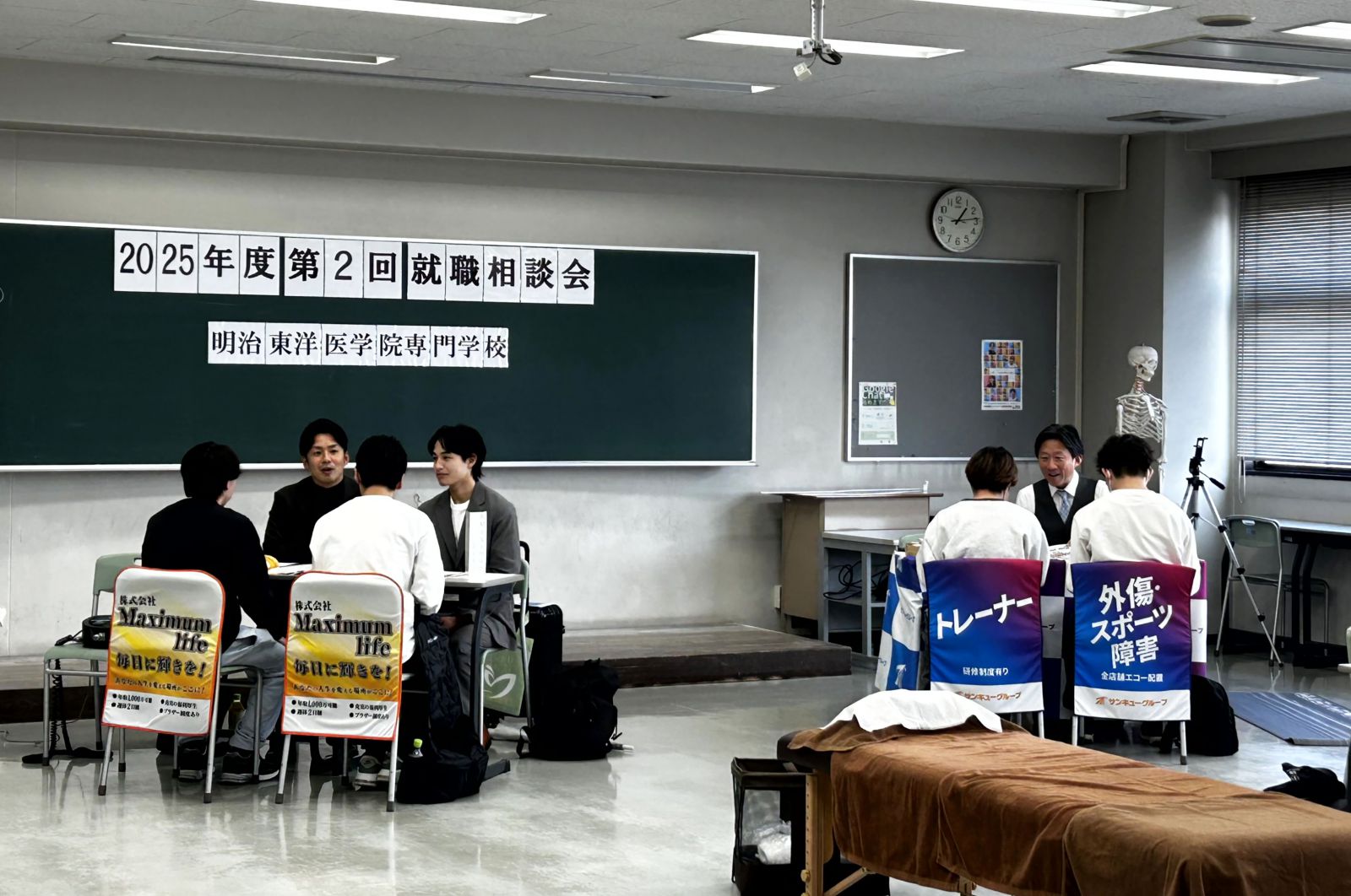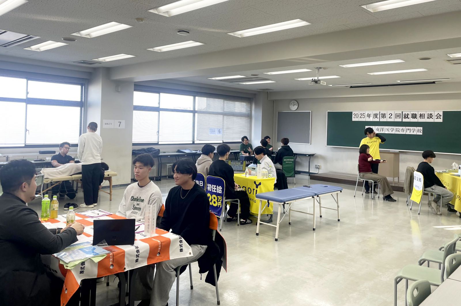 今回は、1・2年生の学生を中心として、これから就職活動を行っていく上での準備と、今回も鍼灸整骨院やデイサービスなどの30社の事業所様にご参加いただき、実際に様々な施術を見学させていただくことができ、自身の進路について早い段階から考えることができる機会となりました。