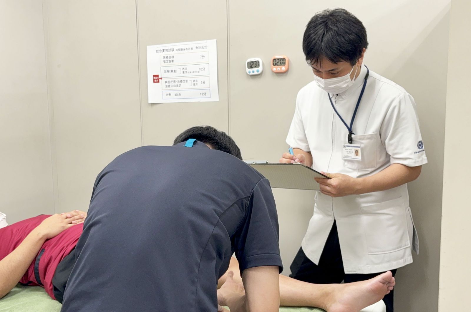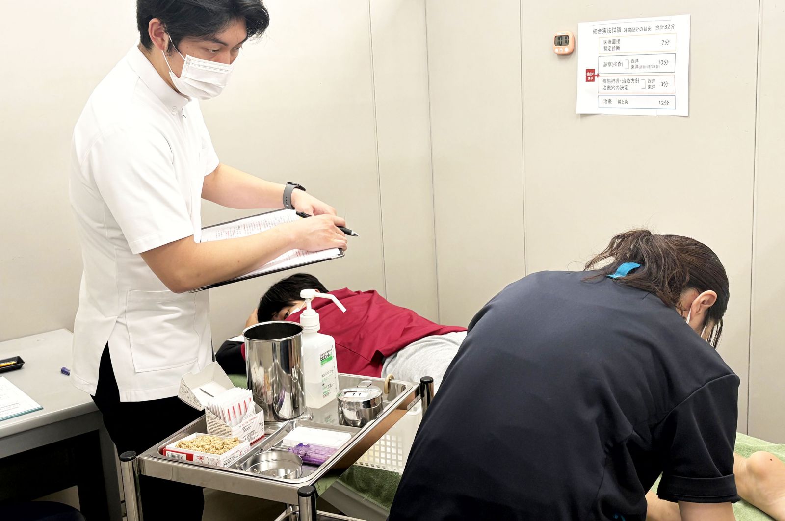 この試験は卒業実技試験として、3年間に学んだ知識・技術・態度を評価するもので、鍼灸を職業とする者にとって国家試験前に乗り越えなければならない大事な試験の一つです。