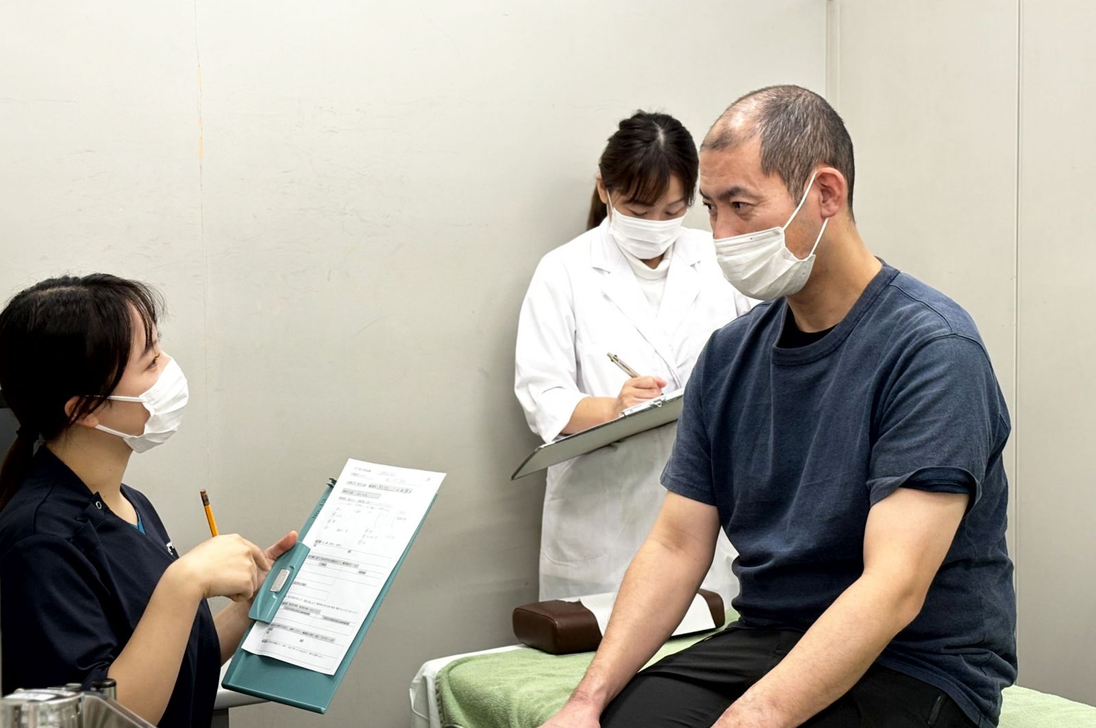 模擬患者は、卒業生や教員養成の学生さんに務めてもらい、現代医学的にも東洋医学的にも検査をし、治療を実施します。