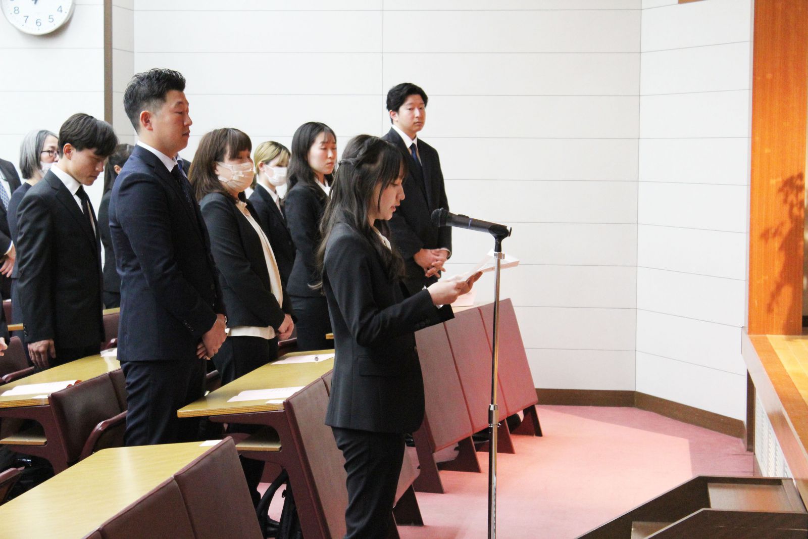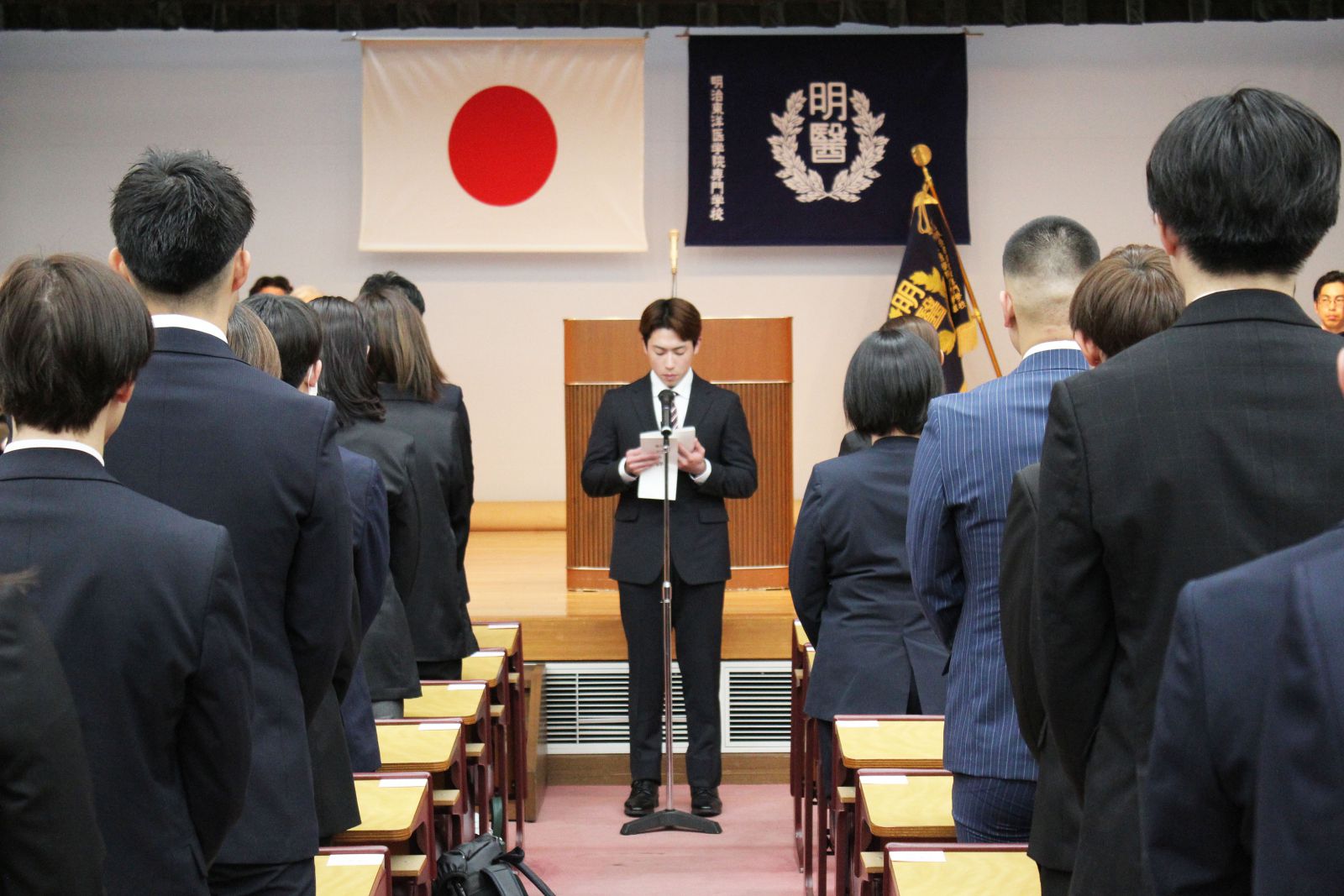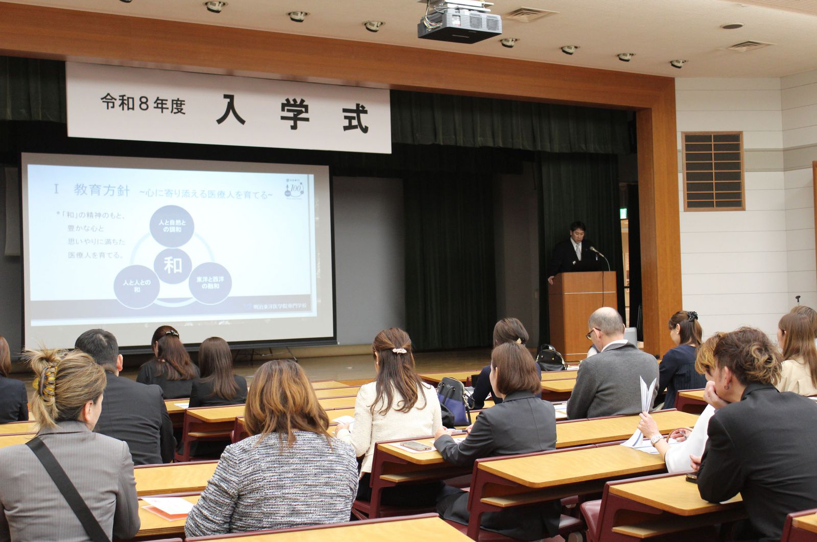 三澤校長による式辞では、「それぞれの目標を達成するためには、これから始まる学びの日々に対して、強い覚悟と高い志を持って取り組んでいただきたい。これからの学生生活において人との出会いは、自分を成長させ、人生を豊かにしてくれます。人と人との絆を大切にして、国民の健康に携わる医療人として成長してほしい」と新入生へ熱いメッセージを贈りました。